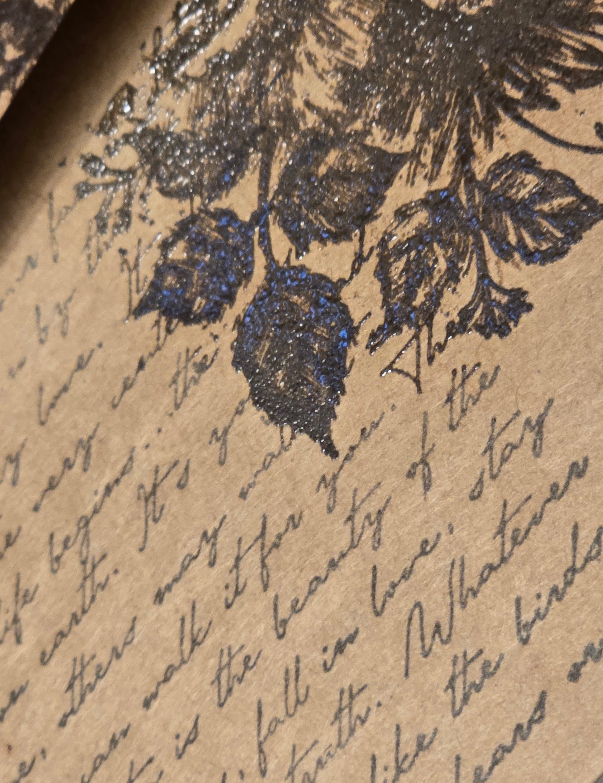- Envelope included (Kraft, self-sealing) - with the Rumi quotes stamped on the left side of the back, and the roses to the right (embossed slightly to add shine and texture)